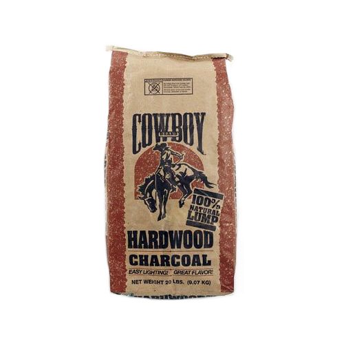 This 20-pound bag of cowboy brand hardwood lump charcoal is 100-percent all natural. Contains no coal or chemicals. Burns faster and hotter than standard briquettes. Provides great wood flavor to every barbecue.