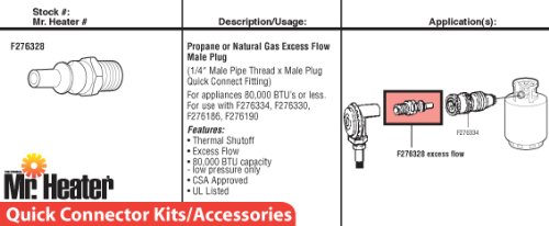 First off, the excess flow mechanism of this plug is a small ball-bearing that is pressed into the back of the plug if the flow is too great, either reducing or cutting off the flow. Since the propane is already regulated, this is not required. It also seemed to restrict the flow some.